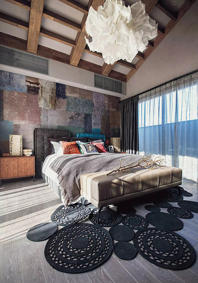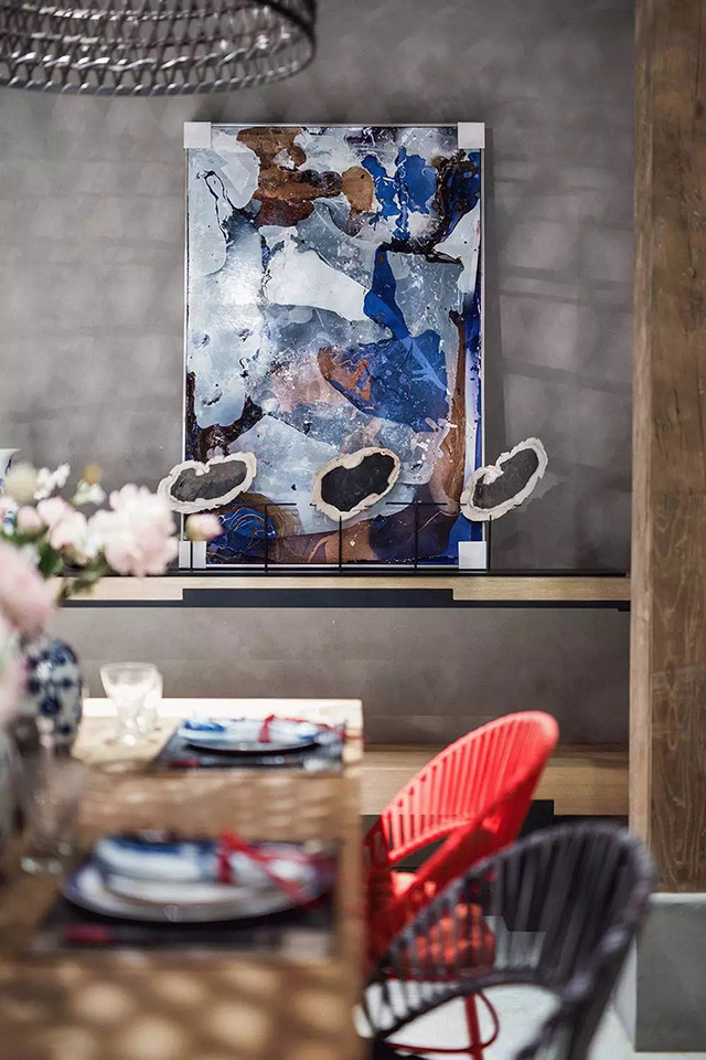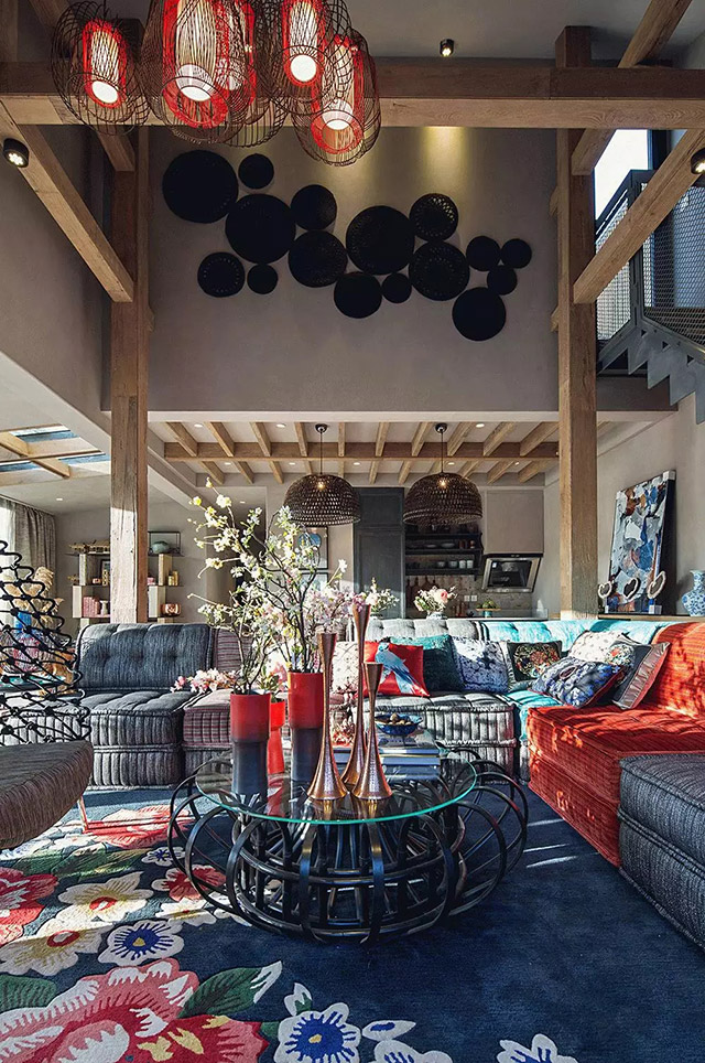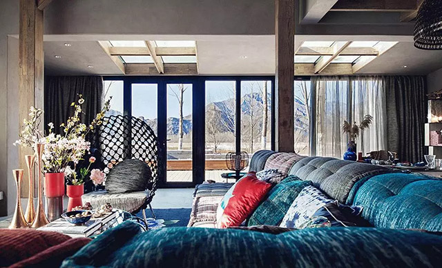 拾得大地幸福•长城脚下饮马川是一个集生态、环保与艺术的生活度假地。设计师邦邦以现代设计语言,选择新与旧的对话,打破常规的生活状态,展示东方古老文化,表达中国人对生活方式的自信,对审美的自信,让场域活性化并带给空间丰富的文化深度。以独到的色彩运用和个性鲜明的装饰展现其对于文化与信仰的共鸣,让空间彰显出特有的魅力。